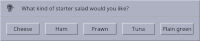 "Cheese", "Ham", "Prawn", "Tuna", "Plain green",