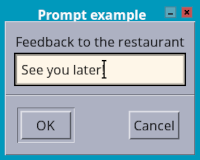 Redtools requester library is a small library that offers simple requesters and dialogs for user disposal. Detroit engine has bindings to use Redtools library if it is compiled and installed.